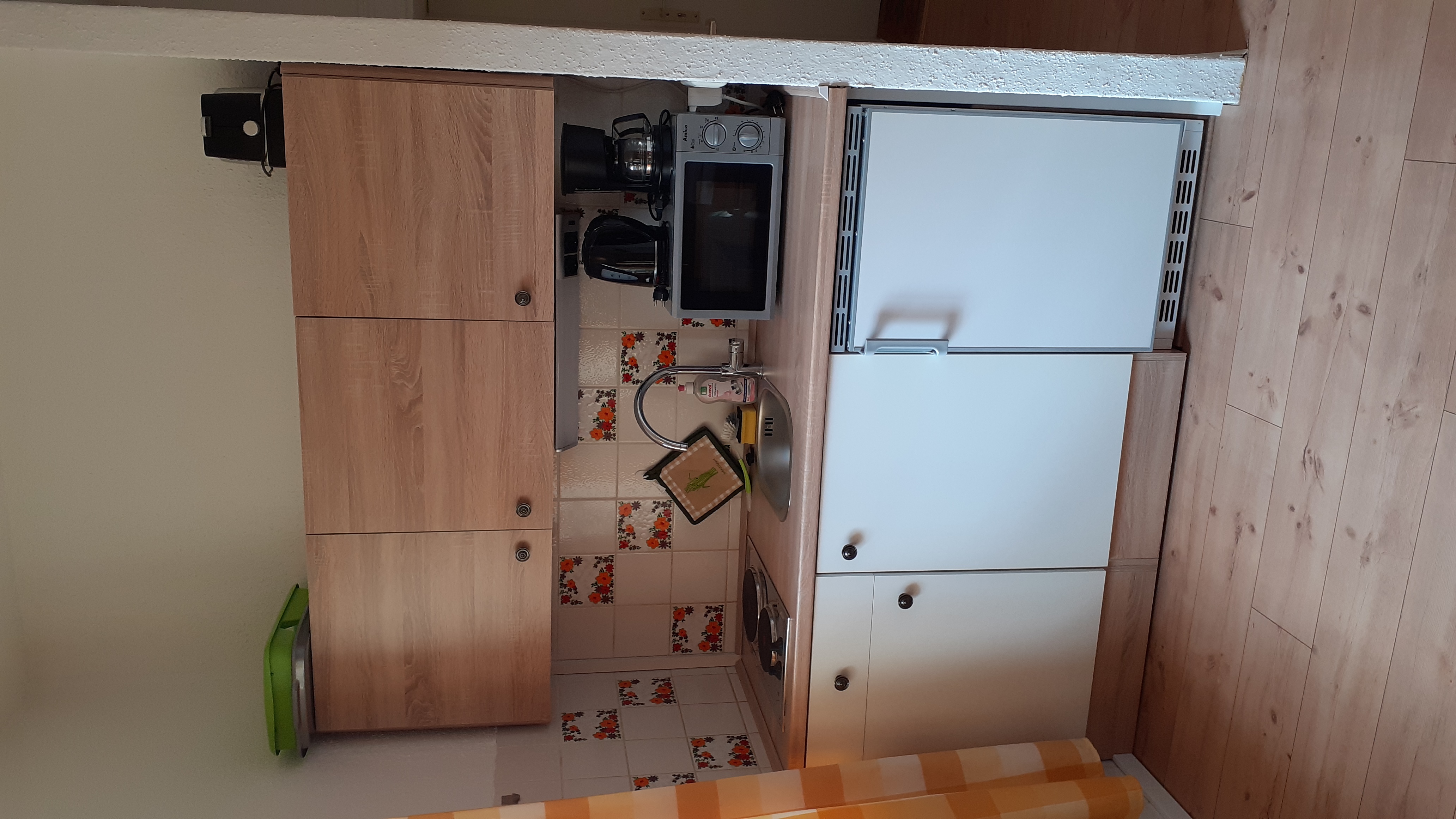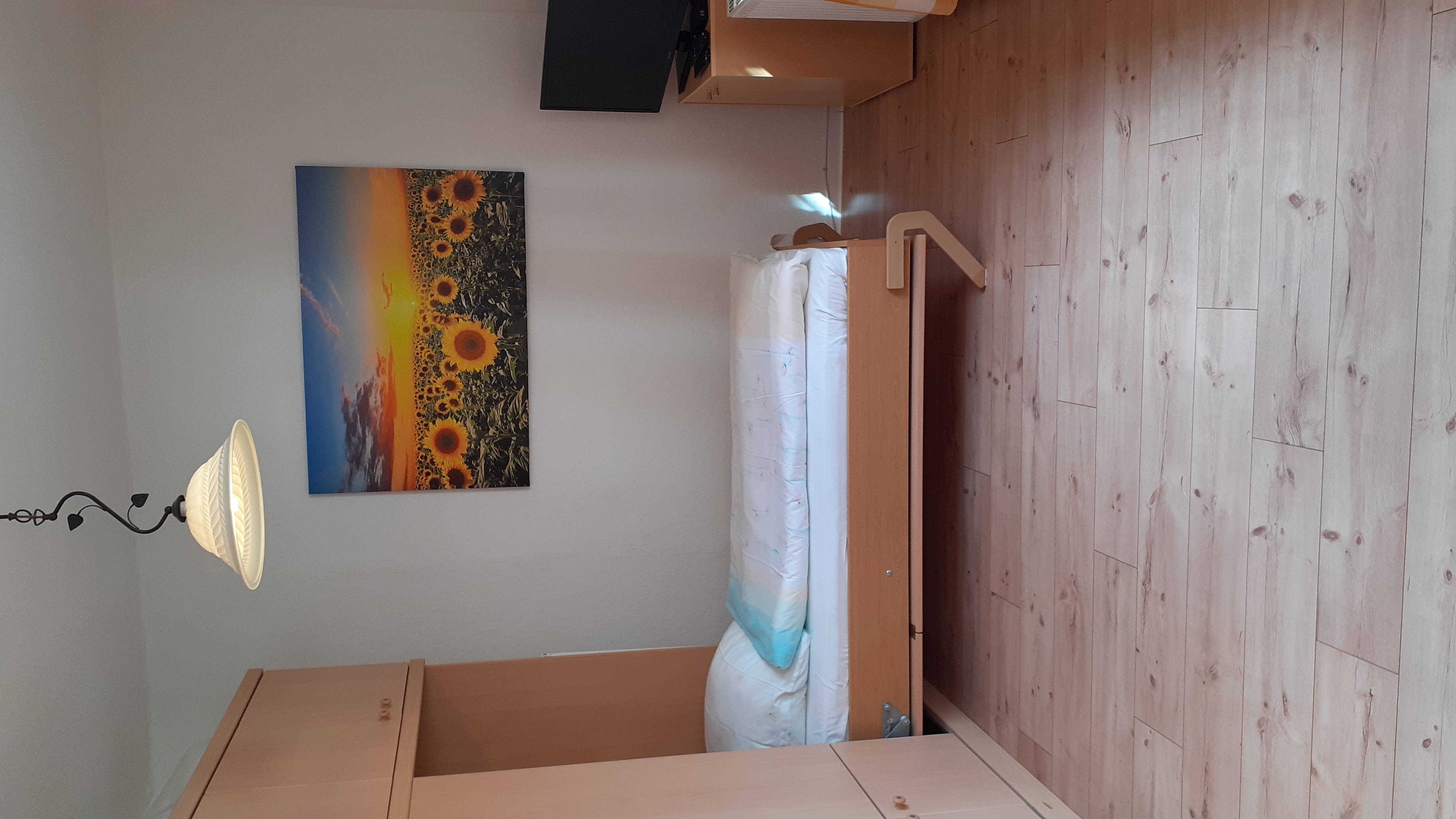Als Schlafgelegenheit dient ein Doppelschrankbett, welches auch einzelnd runtergeklappt werden kann.
